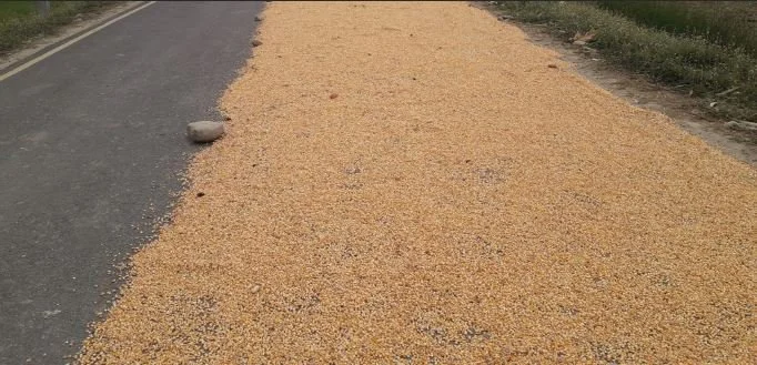 Photo 1: Maize drying on the blacktopped road (PC: The Rising Nepal)